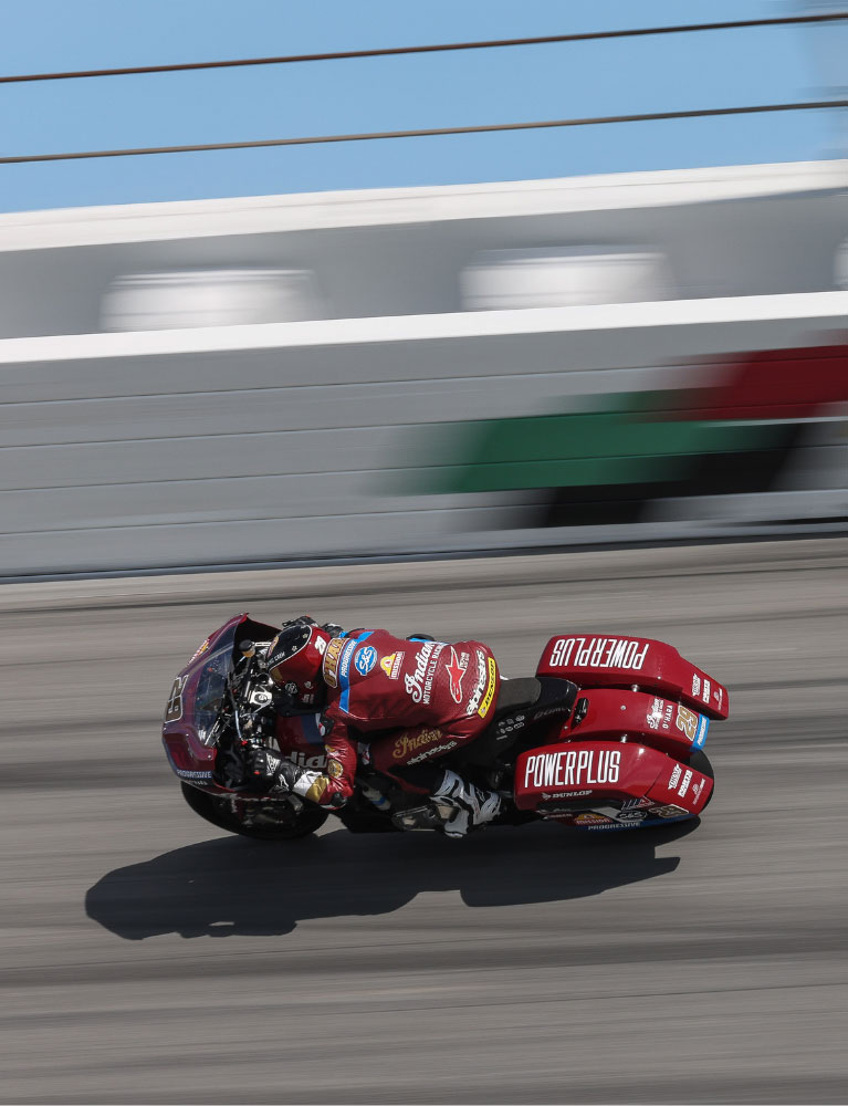 1909 siegten wir beim allerersten Motorradrennen auf dem Indianapolis Motor Speedway. 1937 holte Ed Kretz den ersten Daytona-200-Triumph auf einer Indian Sport Scout. Die legendäre Wrecking Crew prägte die Rennszene nach dem Krieg. Diese Tradition führten wir bei den Flat-Track-Rennen der 2010er Jahren fort. Heute kämpfen unsere Fahrer in der Bagger Racing League Europe und in der MotoAmerica King of The Baggers-Serie um den Sieg. Verschiedene Epochen. Gleiche Ergebnisse.